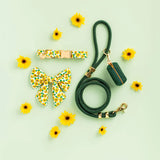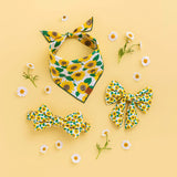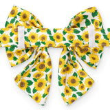 A sailor bow style with tapered tails. These vibrant sunflowers are sure to make your pup happy even when skies are grey. Designed by artist Cassidy Demkov.