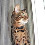 Luxurious hand-painted studded leather collar that is super comfortable to wear yet tough enough to keep up with the demands of an active cat. You may notice your cat strutting in this collar but your cat won't. They'll barely notice it's there! It features a safety breakaway buckle, gold bell and adjustable slider for the perfect fit.