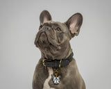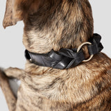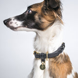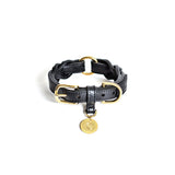 The HYDE PARK dog collar made from genuine, sturdy cowhide leather with elegant braiding design for a handcrafted design twist. With real brass hardware and an engraved collar charm.