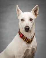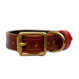 Made with the best Sedgwick English Bridle Leather for a distinctive collection, sourced from one of the last remaining heritage tanneries still operating in Great Britain. Chestnut Brown Leather with a contrasting Oxblood Red loop and lining made from soft glove leather, lightly padded for extra comfort. Finished with solid brass hardware for a secure and stylish dog collar.