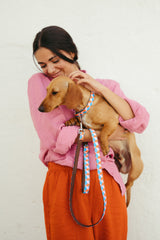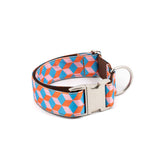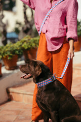 The Textura Satuna dog collar combines retro style with geometric design. This vibrant collar has an irresistible colour combination of pink, blue and orange. Made of high quality recycled materials to ensure durability and comfort.