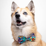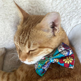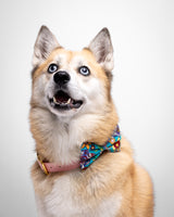 A bold and interesting accessory for your dogs collar. Available in two sizes so for those dogs that have a lot of fluff you can size up in the large to be seen or for more cutesy and demure go small. Both have elasticated loop on the back to slide over your dogs collar. Size small suitable for cats too!