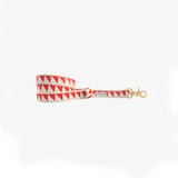 One of our most lightweight leads in the collection. Vermilion red and white patterned ribbon on both sides so you can enjoy the design no matter how many circles your dog walks around in. Durable quick dry hemp webbing and solid brass hardware with a snap hook for easy clipping to the dog collar.