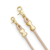 Your dog will turn heads at the dog park with this neutral marine grade rope dog lead. Paired with luxe gold hardware for both quality and design perfection. The double braided nylon is weatherproof and will not mildew or fray. Use the O-ring to attach a waste bag holder from our collection.