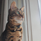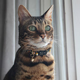 Handcrafted with lightweight yet durable vegetable-tanned leather, finished with a signature gold bell & safety release buckle. The result is a luxurious hand-painted leather collar that is comfortable yet tough enough to keep up with the demands of an active cat. You may notice your cat strutting in this collar but your cat won't. They'll barely notice it's there!